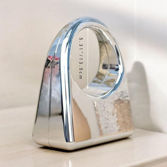 Introducing our stunning clutch: bold, modern, and chic. Its unique design features a glossy finish and a convenient handle, making it the perfect accessory for any special occasion. Shine bright with this statement piece.